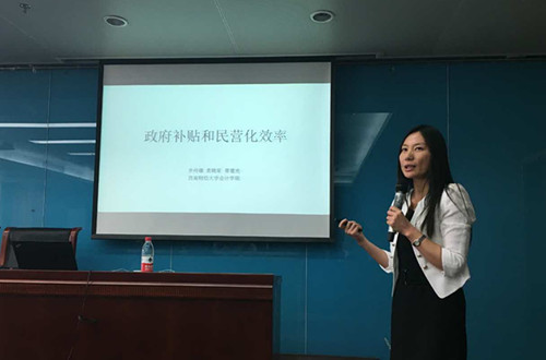 10月10日下午,西南财经大学步丹璐教授应邀来访太阳城集团官方网站,为学院教师、博士生、本硕博连读生以及本科生学术创新实验班成员带来了题为“政府补贴和民营化效率”的学术讲座。