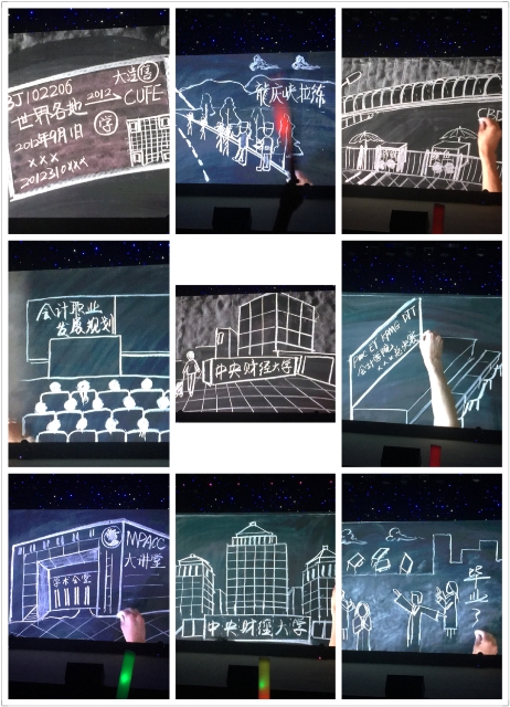 而后是精心制作的中场视频,视频采用黑板画的表现手法,2012级注会班班长林明辉用手中的粉笔淋漓尽致地展示了毕业生们从开学报到直至毕业的生活点点滴滴,引起了同学们的强烈共鸣。学子们对母校的不舍与眷恋,对师长的敬重与感恩,对同窗的感谢与祝福;老师们几年如一日的辛勤付出,对学生的叮咛与嘱托,都通过一张张永恒的留影、一段段深情的独白串联起来。