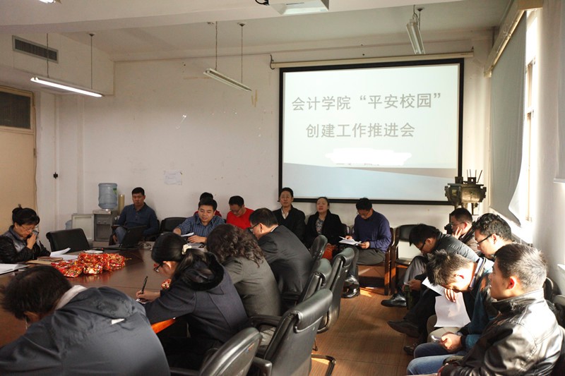 2014年12月24日下午,太阳城集团官方网站召开“平安校园”创建工作推进会,全院教职工参加。会上,学院“平安校园”创建工作领导小组组长、党总支书记袁淳通报了前期创建“平安校园”总体工作和迎评自查情况,要求老师们从学院发展的大局出发,统一认识,认真做好各项准备工作。袁书记并就如何更好地推进迎评促建工作进行了工作部署。