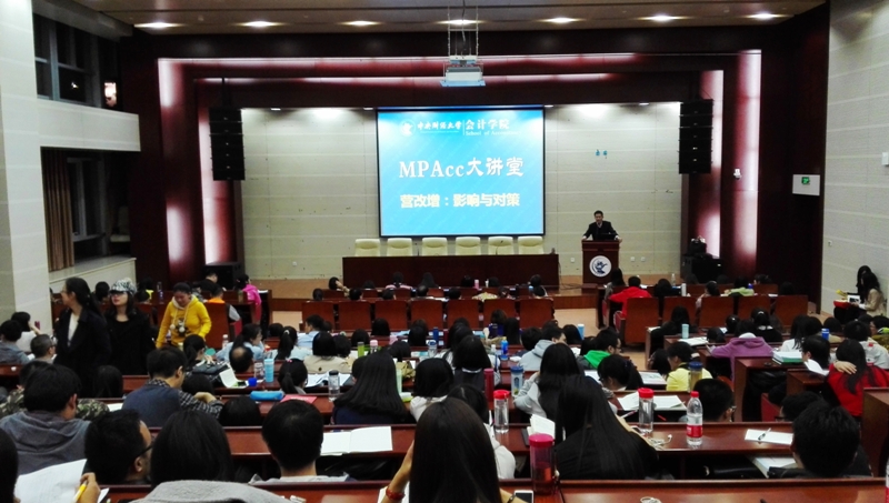 10月26日晚上6点,太阳城集团官方网站研究生客座导师、中税网税务事务所总裁王冬生老师做客“MPAcc大讲堂“,在学术会堂202为MPAcc研究生做了题为《营改增:影响与对策》的主题讲座,全场座无虚席。王冬生老师在税务筹划、税务稽查、以及税务风险防控方面有丰富的理论研究和实战经验,在讲座中,他通过对营改增若干基础问题和政策的解释,向在场同学讲解中国营业税向增值税改革的影响和对策。