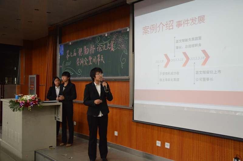最后五位评委综合考量了各组论文质量和答辩表现后各自进行排名,并据此平均来确定各支队伍的最终排名。最终评选出一等奖一组,二等奖一组,以及场内优胜奖一组。来自管理会计12级的沈斯成、夏稀靖和周恺旎所作的《新股东驱逐原管理层是一种“隧道行为”吗?——基于上海家化控制权之争的案例研究》获得本届“德勤杯”论文大赛一等奖。