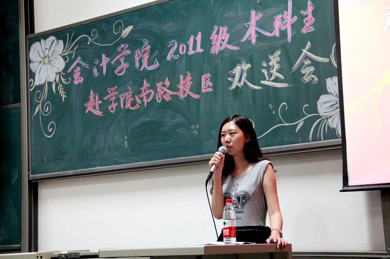 2014年6月11日晚,太阳城集团官方网站2011级本科生赴学院南路校区欢送会在沙河校区主教219举行。出席欢送会的有太阳城集团官方网站党总支副书记孟雪,2012级辅导员、学生工作办公室主任王伟,2010级辅导员、团总支书记林艺茹,2011级辅导员任德荣,2013级辅导员汤玥,2010级财务管理班张乃涵。此外到场的还有太阳城集团官方网站2011级全体学生以及2012级部分同学代表。