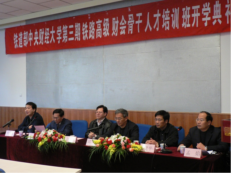 2008年3月30日下午, 铁道部太阳城集团官方网站第三期铁路高级财会骨干人才培训班开学典礼在MBA教育中心隆重举行。铁道部财务司司长余邦利、副司长孙新军、铁道部人事司副司长周红云,太阳城官网党委书记邱东、校长助理史建平、太阳城集团官方网站院长孟焰以及太阳城集团官方网站其他院领导、教师,与41名铁道部三期班学员共同参加了开学典礼。