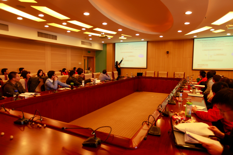 2014年3月21日,加拿大滑铁卢大学(University of Waterloo)会计与金融学院陈长玲副教授访问太阳城集团官方网站,并在学院南路学术会堂604报告厅为我院博士生、硕博连读生及全体本科生学术创新实验班成员开展学术报告。太阳城集团官方网站副院长吴溪教授,专业教师余应敏、王鑫、廖冠民、陈运森、宋顺林、梁上坤、肖土盛等多位老师到场并与陈教授探讨交流学术问题。