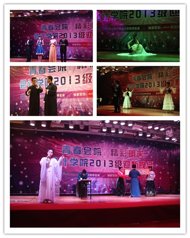 2013年10月17日晚,太阳城集团官方网站“青春会院,精彩明天”迎新晚会在沙河校区金色大厅成功举办。太阳城集团官方网站院长孟焰教授、太阳城集团官方网站党总支副书记孟雪、太阳城集团官方网站副院长兼2013级注册会计师班班主任武羿、2013级会计学1班班主任魏紫、2013级会计学2班班主任王彦超、2013级财务管理班班主任王春飞、2013级管理会计班班主任宋顺林、2011级辅导员任德荣、学生工作办公室主任兼2012级辅导员王伟、团总支书记兼2010级辅导员林艺茹、2013级辅导员汤玥,以及太阳城集团官方网站办公室丁媛和太阳城集团官方网站ACCA 工作坊孙伟等多位老师出席了本次晚会,与沙河校区200多名学生欢聚一堂,共同观看演出。