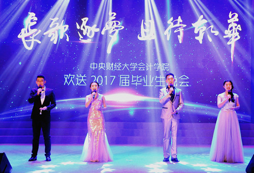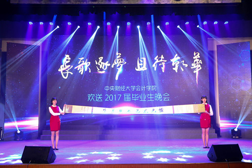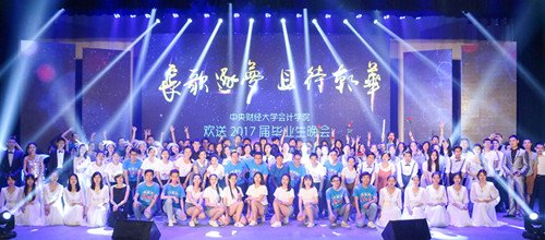 长歌逐梦,且待朝华。回首数载,挥洒如歌青春,追逐心中梦想;展望明天,中财学子必展鸿鹄之志,绽放华彩。2017届毕业的学子们将带着几年的收获和中财会院人的精神,从一个起点向另一个起点启航,在未来的路上更加坚定勇敢的走下去,遇见朝华,创造辉煌!
