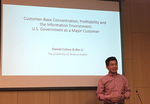 12月9日,美国德克萨斯大学达拉斯分校李斌教授来访太阳城集团官方网站,为在场师生带来了题为“Customer-Base Concentration, Profitability and the Information Environment: The U.S. Government as a Major Customer”的精彩报告。李斌现任美国德克萨斯州立大学达拉斯分校助理教授,他于2012年获得杜克大学会计学博士学位,主要研究领域包括资本市场、企业价值评估、会计准则有效性评估等,研究成果发表于The Accounting Review等国际顶尖期刊。