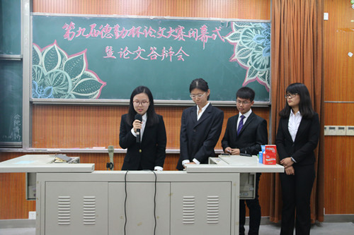 入围答辩的四支队伍以严谨认真的态度,从研究目的、研究思路以及研究结果等方面详细阐述了本队伍的课题研究。期间每支队伍的论文演讲,极具特色,给评委及观众留下深刻印象,展现出当代大学生严谨的逻辑思维能力、学术创新能力和学术风采。在答辩环节中,评委老师从论文的选题深度,所选案例的典型性、论文行文组织调理性等角度进行提问,同学们的回答思维敏捷,思路清晰,准确深入。答辩过程中选手和老师之间热情洋溢的互动引得台下时时响起热烈的掌声。