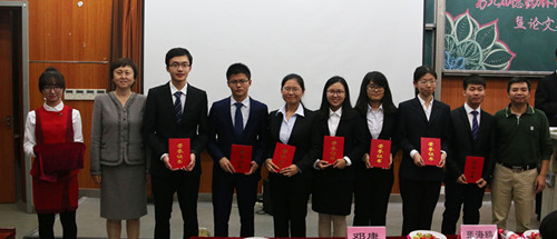 经过紧张激烈的答辩角逐,在老师们慎重公正的评审下,郭超瑾(财务管理14)、高芸芃(会计学14-1)、孙可薇(会计学14-2)、张卓儒(管理会计14)的《大股东高位减持:基于盈余管理和高送转的排兵布阵----以海润光伏为例》,以及马逸飞(管理会计14)、谷旭婷(财务管理14)、王英杰(会计学14-1)的《杠杆增持与借壳上市风险——以上海斐讯借壳慧球科技为例》脱颖而出,获大赛一等奖。此次比赛另评选出二等奖两支队伍、三等奖和优胜奖各三支队伍。评委老师授予获奖选手荣誉证书,勉励所有的选手再接再厉,再创佳绩。