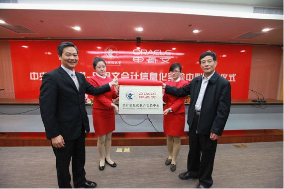 王广谦校长和甲骨文公司全球副总裁卢汝文先生共同为会计信息化联合实验中心揭牌揭牌