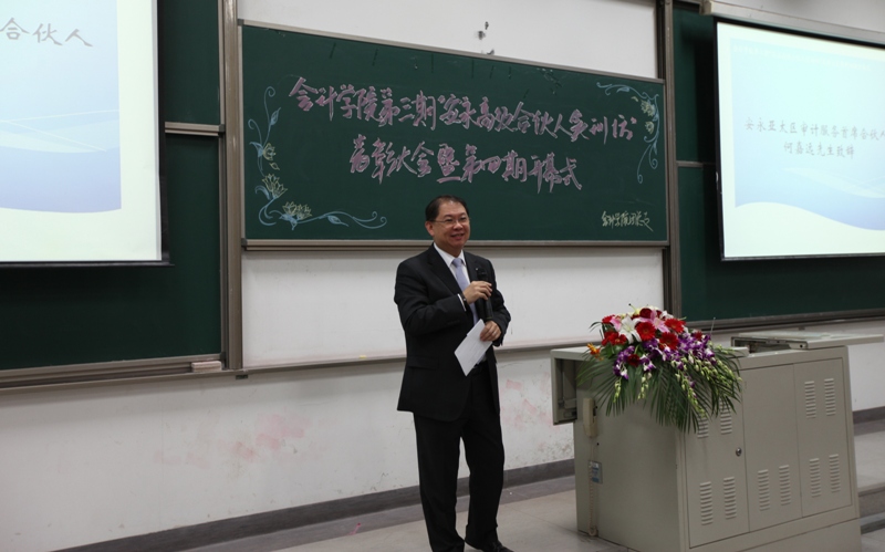 开幕式结束后,第四期“安永合伙人实训坊”讲座第一讲——“风向导向与审计方法”正式开讲,由安永亚太区审计服务首席合伙人何嘉远先生亲自担任主讲人。何先生的讲座深入浅出,广泛引用事务所真实案例,以学员们易于理解的方式讲解实务中的审计知识。学员们认真聆听,跟随何先生的讲授积极思考,获得了许多收获。