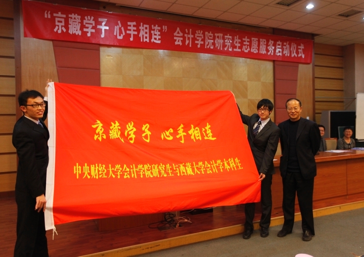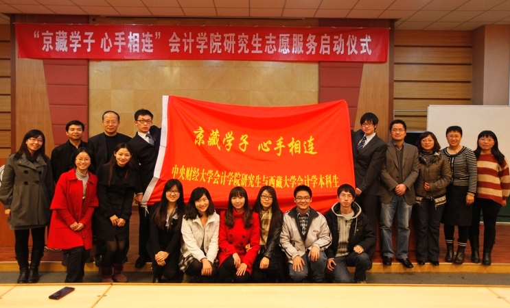 2012年11月21日下午在学院南路校区的主教学楼报告厅,太阳城集团官方网站孟焰院长、袁淳副院长、孟雪党总支副书记以及来自西藏大学财经学院的张春雷等3位老师和全体太阳城集团官方网站研究生103名爱心志愿者,共同见证了此次“爱心共建”活动的启动仪式,会议由袁淳副院长主持。