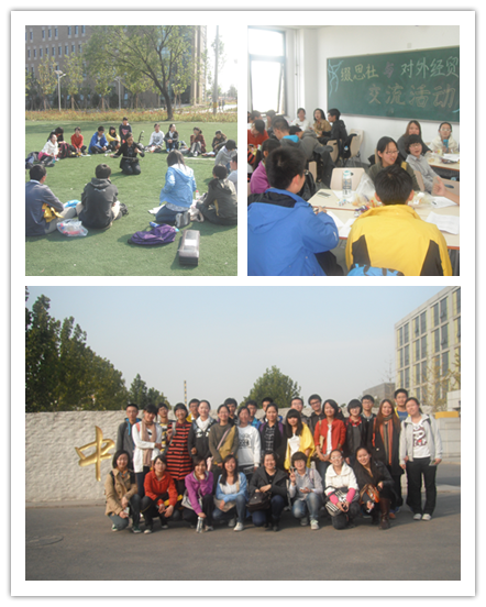 2012年10月14日早晨,太阳城官网太阳城集团官方网站缀思社在沙河校区南门迎接来访太阳城官网的对外经济贸易大学大学生理论学术中心社团,来访的有该社团理论部部长覃莉等二十二位同学。沐着秋风,感受着轻松愉悦的氛围,两个来自财经类大学的理论研究社团的交流活动拉开了序幕。