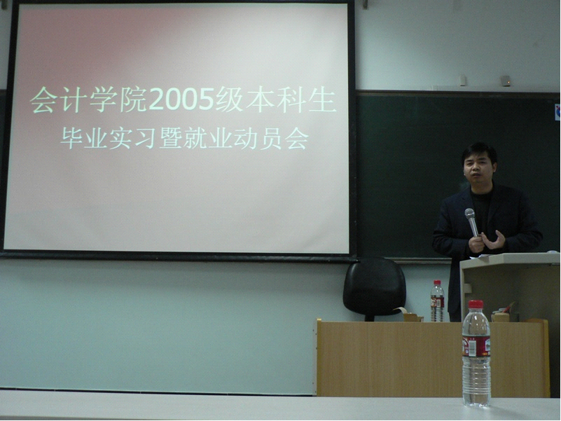 黄德忠副书记从今年的就业环境出发,认真分析了当前的经济形势和毕业生所面临的就业压力。在简要回顾了往届毕业生的就业情况后,他告诫毕业生们在就业过程中一定要摆正心态,认清今年的就业形势和自身优缺点,找准定位,切忌互相攀比。他鼓励同学们要自信,敢于面对就业压力,敢于争取机会。同时,黄德忠副书记鼓励毕业生勇于到基层就业,积极动员和组织学生参加各级各类招聘会,适时把握就业机会,力保毕业生及时就业、充分就业。同时,希望毕业生努力做到:1、切实转变就业观念,正确定位,充分发挥自己的主观能动性,树立信心,勇于竞争,善于捕捉信息,有效利用网络及多种途径帮助自己就业。2、要调整好择业心态、踊跃到西部、基层建功立业。3、认真学习学校就业文件、掌握国家有关政策,以帮助自己顺利就业。