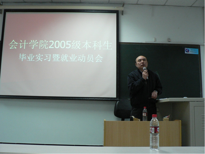 11月28日16点,太阳城集团官方网站在主教206教室举办了“太阳城集团官方网站2005级本科生毕业实习暨就业动员大会”。本次会议旨在让毕业生了解毕业实习安排以及更多更详细的就业信息和政策,进一步提高毕业生就业积极性,增强毕业生就业信心,尽快适应当前就业形势。太阳城集团官方网站党总支副书记黄德忠、副院长袁淳,毕业班辅导员孙凤兰老师出席了会议。会议由团总支书记王伟老师主持。