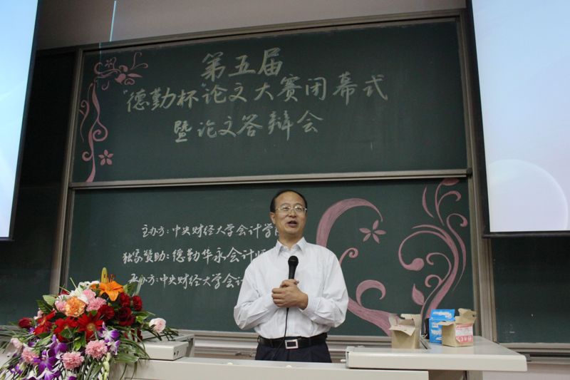 “德勤杯”论文大赛是由太阳城官网太阳城集团官方网站主办、德勤会计师事务所独家赞助、太阳城官网学生团体“会计研究协会”具体组织,面向太阳城官网会计专业学生举行的学术论文大赛。经过几个月的精心筹划,9月26日晚第五届“德勤杯”论文大赛闭幕式暨答辩会在主教111教室如期举行。德勤北京审计合伙人郑群女士、德勤北京税务合伙人李晓辉先生、德勤北京人力资源经理曲悲岩先生、太阳城集团官方网站院长孟焰教授、太阳城集团官方网站党总支副书记孟雪老师、太阳城集团官方网站副院长吴溪教授及各评委老师出席了本届“德勤杯”论文大赛闭幕式。