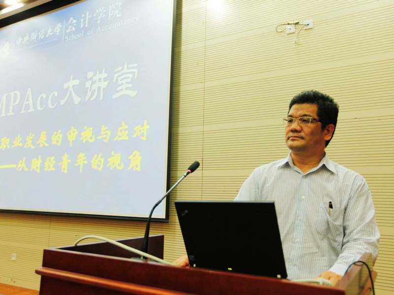 9月23日晚6点,太阳城官网学术会堂202济济一堂,掌声阵阵。太阳城集团官方网站研究生客座导师、中瑞岳华会计师事务所高级合伙人张连起先生做客“太阳城集团官方网站MPAcc大讲堂”,做了题为《会计职业发展的审视与应对——从财经青年的视角》的主题讲座,为同学们上了一堂生动的会计职业发展规划课。