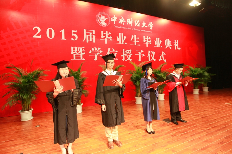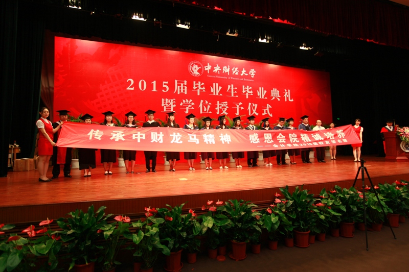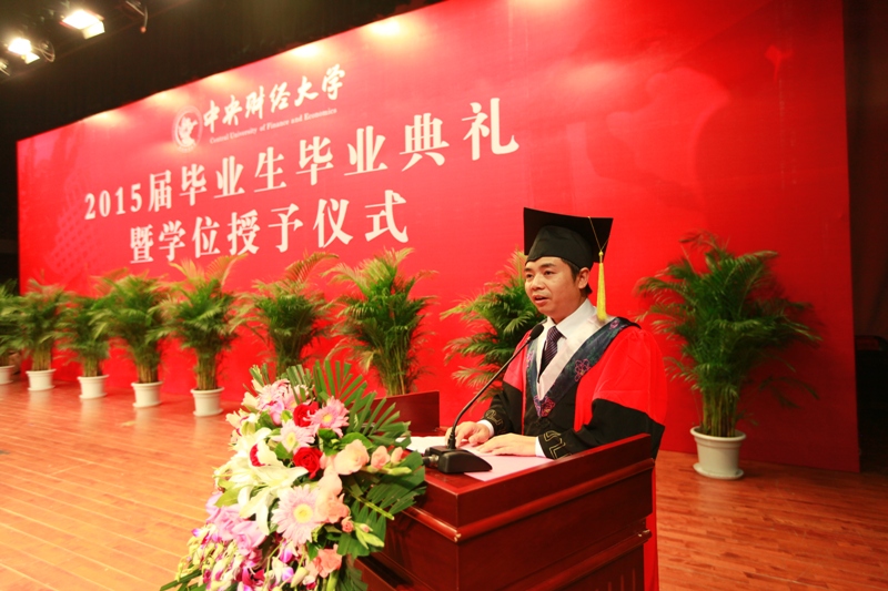 2015届毕业生代表,来自2012级会计博士班的林晚发、2013级MPAcc F班的王奇桥、2011级注册会计师班的苏欣悦以及张新苑代表全体太阳城集团官方网站的毕业生上台发表毕业感言。他们以真挚的情感回忆了大学生活的点点滴滴,以真情的话语道出了对师长的感激与留恋,以昂扬的斗志表达了用实际行动做好中财会院人,共同创造中财会院美好明天的决心。