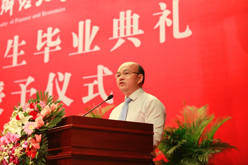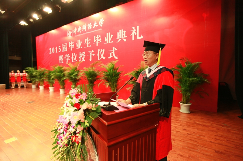 孟焰院长代表学院向全体毕业生致辞。他首先向2015届全体毕业生圆满完成学业表示热烈的祝贺,向为学生成长成才倾注了心血和汗水的全体导师、为学生教育付出辛勤工作的广大教职员工及长期关注中财太阳城集团官方网站发展建设、全力支持学生奋发成才的各位亲友表示诚挚的敬意和亲切的问候。他深切希望每一个毕业生可以脚踏实地,坚持不懈,以宽广的胸怀做人做事,同时也要与时俱进、开拓进取,并在致辞的最后祝愿大家在社会中以优异的成就报效社会,展现才华,为母校辉煌的明天做出自己的贡献。