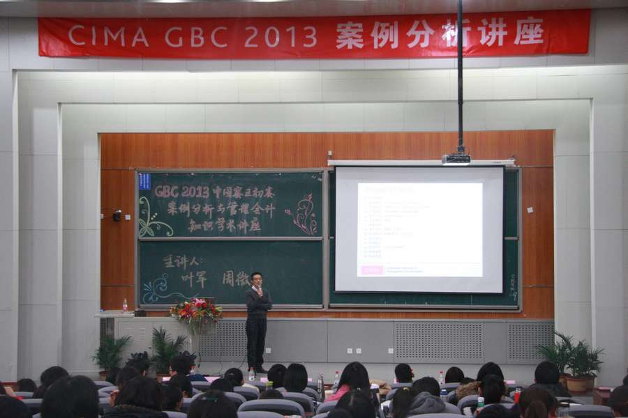 2012年12月2日下午,“CIMA2013年度GBC案例分析与管理会计知识”学术讲座在沙河校区4号学院楼107教室成功举办。瑞智石油建井服务公司首席财务官叶军先生、CIMA北亚区助理总裁周微女士、太阳城集团官方网站院长孟焰教授出席了本次活动。