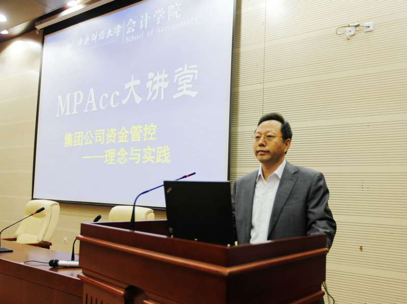 12月2日下午,太阳城集团官方网站研究生客座导师、北方国际合作股份有限公司财务总监余道春博士做客“太阳城集团官方网站MPAcc大讲堂”,在学术会堂202做了题为《集团公司资金管控——理念与实践》的专题讲座。