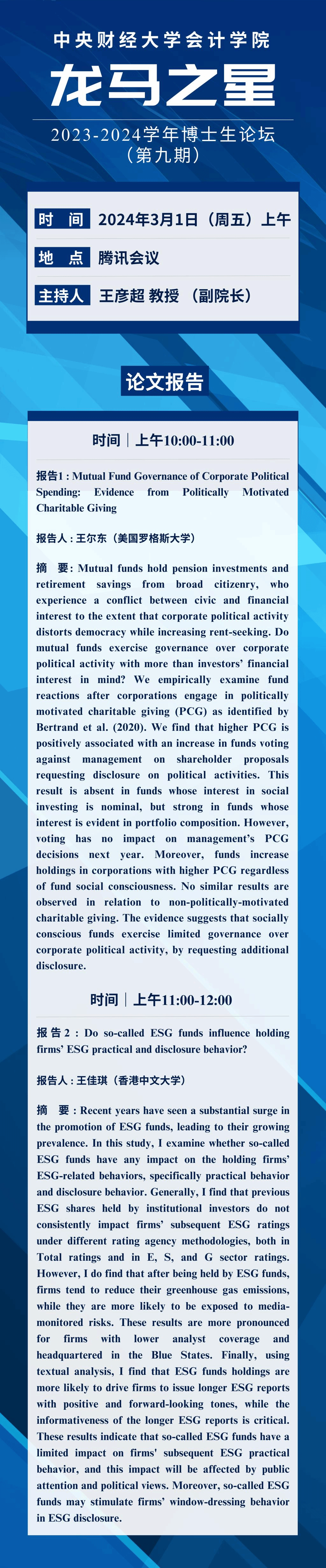 2023-2024学年“龙马之星”博士生论坛(第九期)