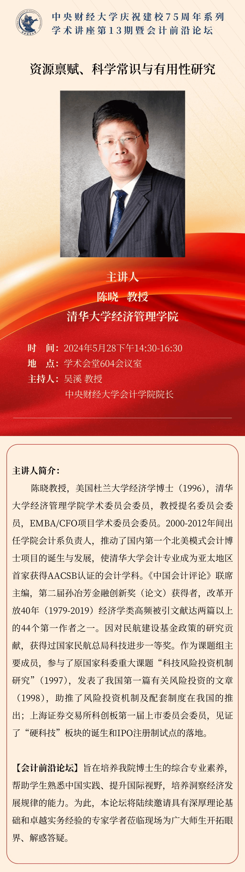 会计前沿论坛|陈晓:资源禀赋、科学常识与有用性研究
