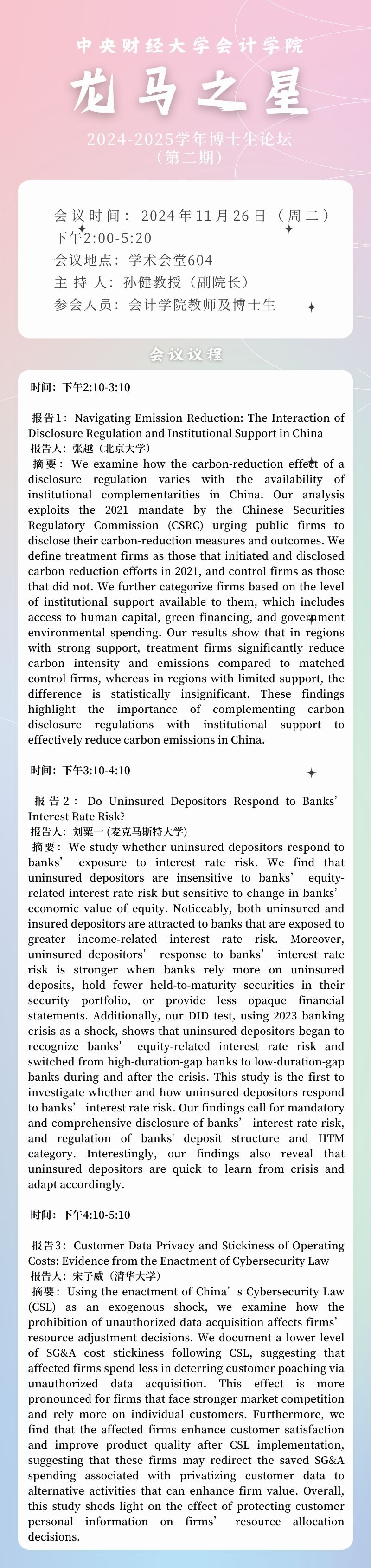 2024-2025学年“龙马之星”博士生论坛(第二期)