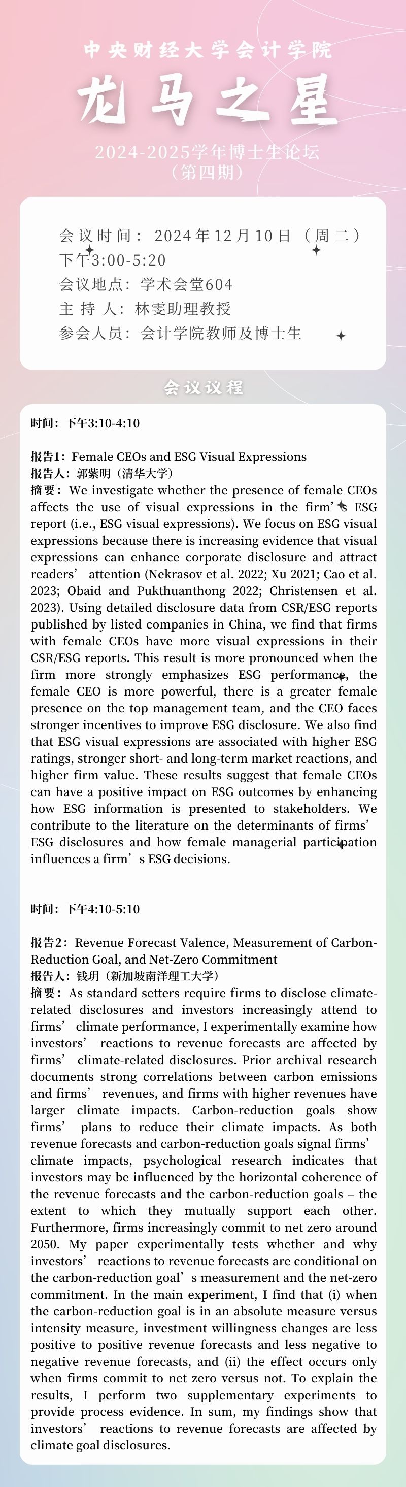 2024-2025学年“龙马之星”博士生论坛(第四期)