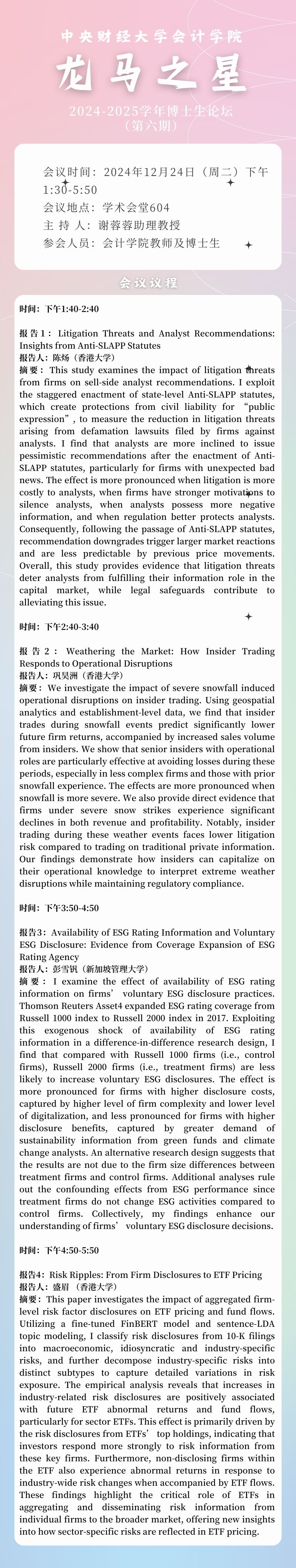 2024-2025学年“龙马之星”博士生论坛(第六期)