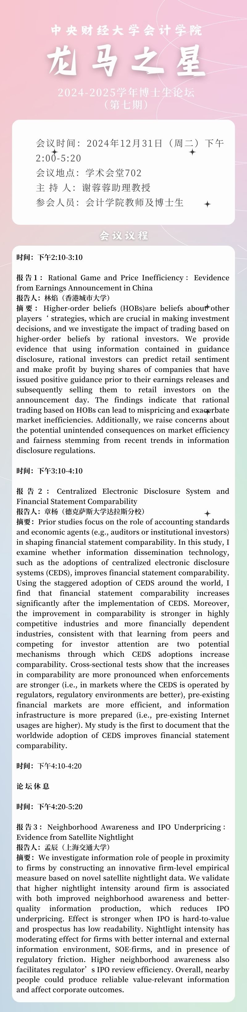2024-2025学年“龙马之星”博士生论坛(第七期)