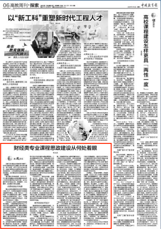 陈运森教授在文章中指出,通过构建整合式财经课程思政体系以及相应的教学设计改进方案,全方位提升学生的政治认同、家国情怀、文化素养、法治意识与职业道德。
