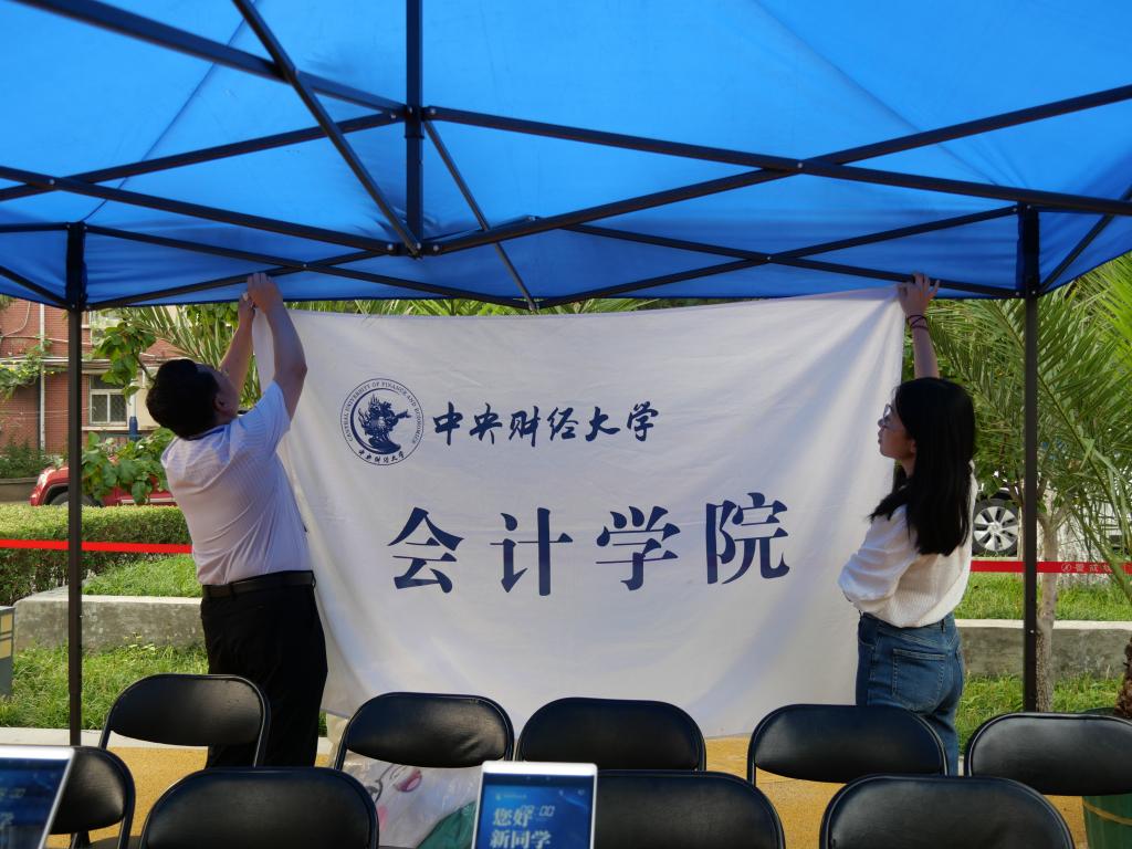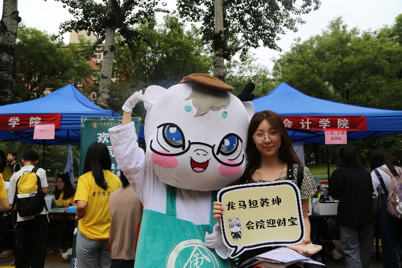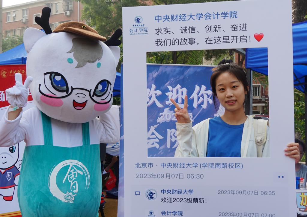 学院报到点,蓝色帐篷下,学长学姐们热情高效地帮助新生完成注册报到流程。新生们顺利领取到校园卡、宿舍钥匙、校徽以及太阳城集团官方网站精心准备的新生礼物。毛绒绒的“会宝”成为全场“团宠”,随时准备为新同学送上一个温暖的拥抱。学院定制了新生专属“朋友圈合照墙”,喀嚓声中,新生们留下了在中财大的第一张照片,也留下属于中财大的第一份记忆。