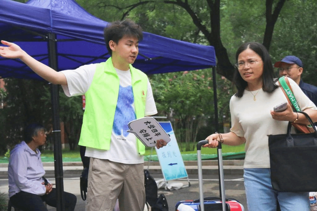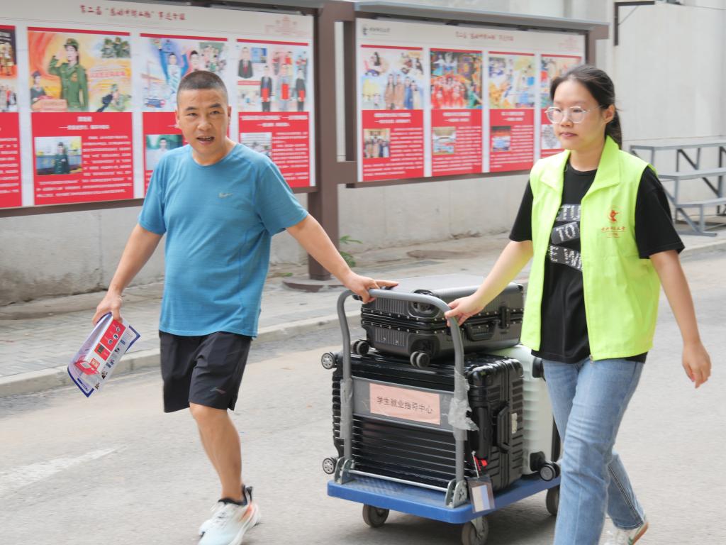 为了更好地迎接新生,太阳城集团官方网站精心安排学生志愿者为迎新工作保驾护航。他们身穿亮绿色马甲,穿梭于校门口、报到处、主教楼与宿舍楼之间,帮助新生搬运行李。哪里有需要帮助的新生,哪里就有他们色彩鲜明的身影!