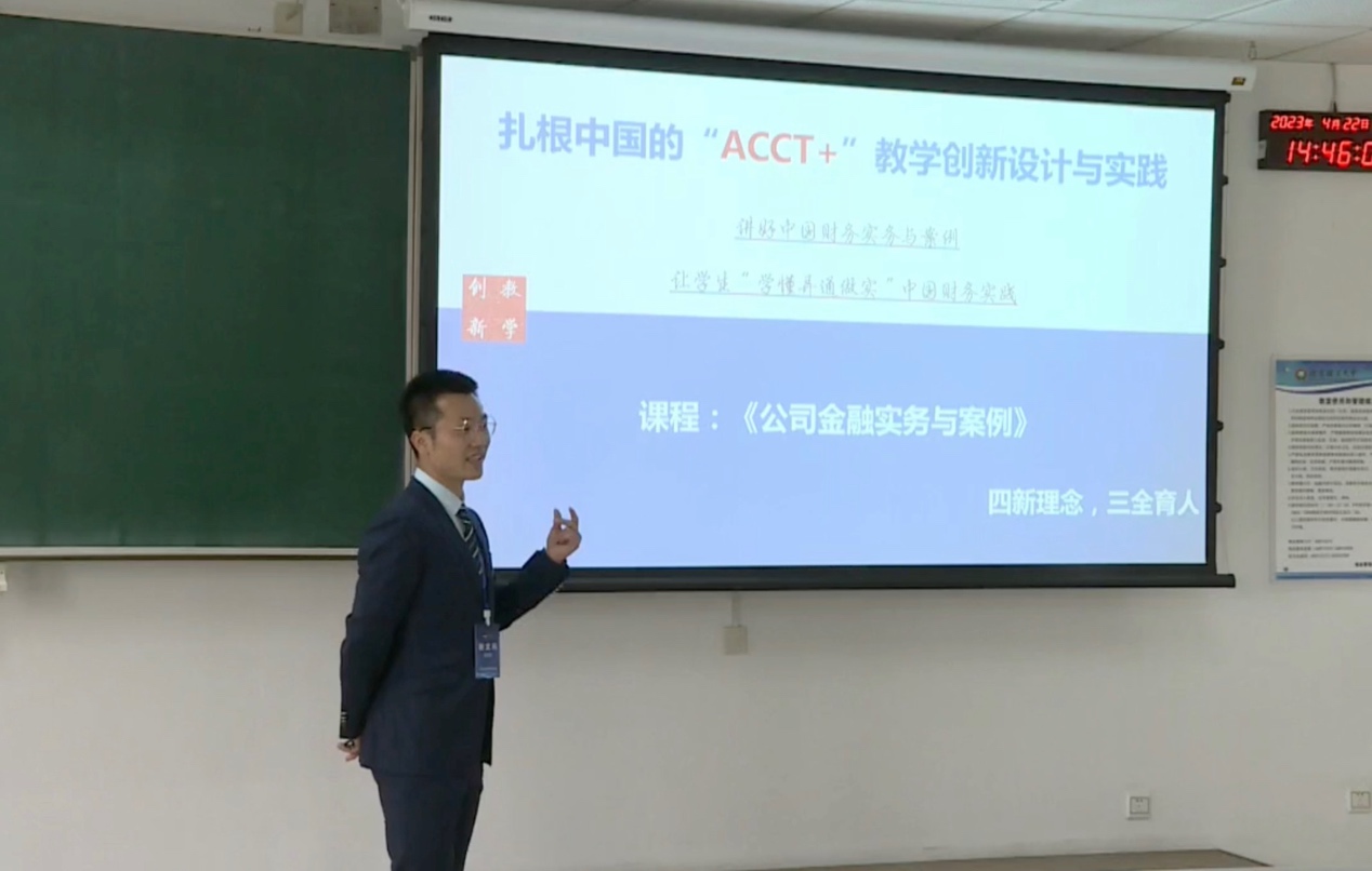 第三届北京高校教师教学创新大赛由北京市教育委员会主办,是教育部倡导的第三届全国高校教师教学创新大赛的地区赛事组成部分。本次大赛紧扣建设高质量教育体系主题,深入推动高等教育教学改革,有效助力“四新”建设,精心打造高校教师教学创新的标杆展示和交流平台。根据北京市教委要求,市级大赛环节主要包括网络匿名评审和现场匿名评审,网络匿名评审环节考察课堂教学视频实录、教学创新成果报告等材料,根据评审总分排序情况,取前30%参赛教师个人(教师团队)进入现场评审环节。在现场评审环节中,郑登津副教授以《公司金融实务与案例》课程下的《扎根中国的“ACCT+”教学创新设计与实践》为主题进行演示角逐,并发挥出色。最终,凭借网络评审和现场评审的加权得分,荣获得人文社科副高组二等奖。