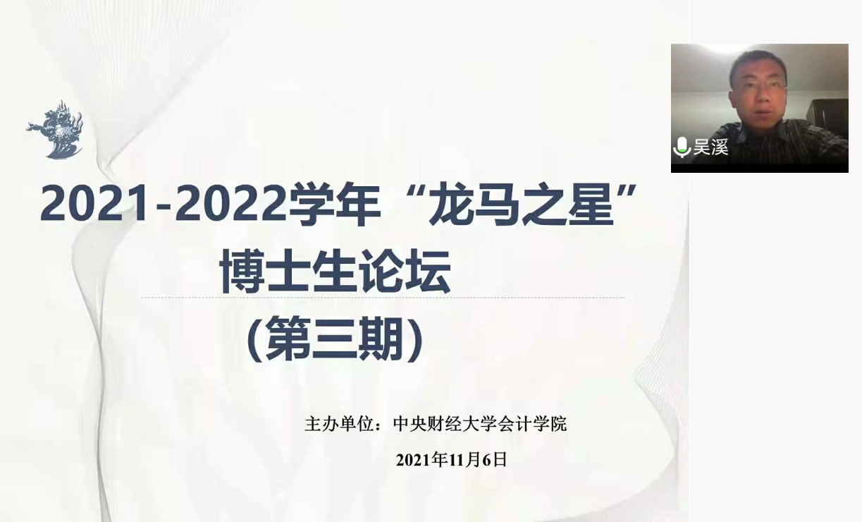 2021年11月6日上午,太阳城集团官方网站2021-2022学年“龙马之星”博士生论坛(第三期)成功举办。受疫情影响,本次论坛采取线上方式召开,由梁上坤副教授主持。