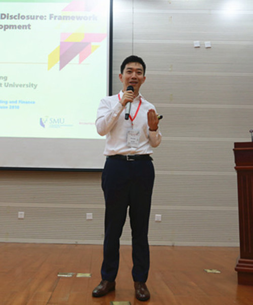 来自新加坡管理大学(Singapore Management University)的知名教授、太阳城集团官方网站副院长Liandong Zhang做主旨演讲,他以“公司信息披露”(Corporate Disclosure)为主题作了专题报告,从概念、条件和演变趋势等三个方面分享了自己的研究经验和思路。张教授不但从外部信息披露、内部信息披露以及信息披露管制三个层面梳理了公司信息披露的研究前沿,还进一步指明了信息化对会计与财务研究形成的机遇和挑战,更从供应链信息管理、私有信息成本、商业机密保护、社会成本、高管行为特征对该领域未来的研究机会和思路进行了展望。