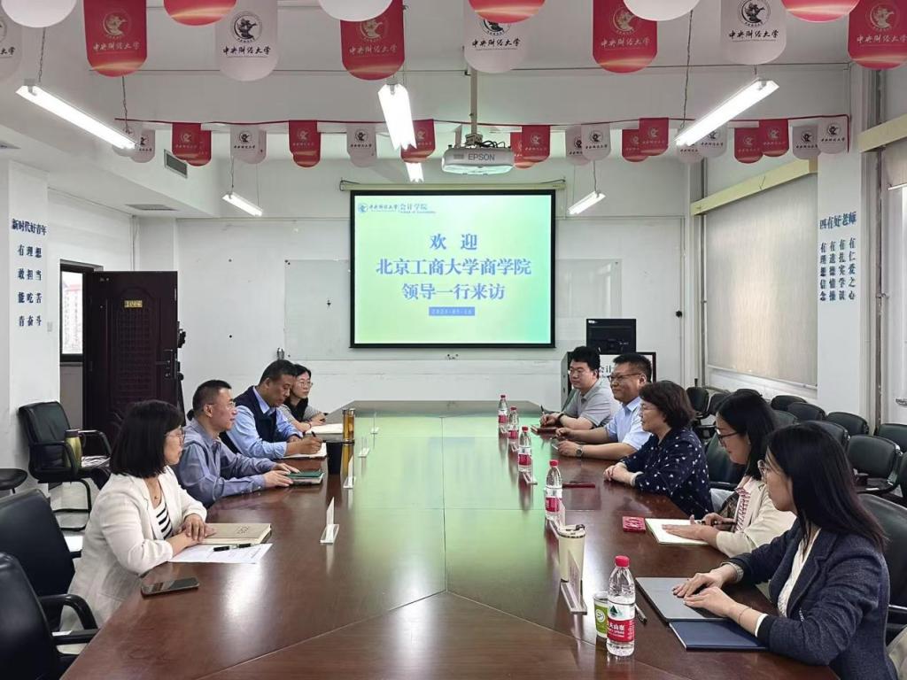 5月16日,北京工商大学商学院院长何玉润、党委书记樊江涛、院长助理徐正达、智能财会学系党支部书记兼学系副主任王欣、MPAcc中心主任刘金钊一行来太阳城集团官方网站调研交流。太阳城集团官方网站院长吴溪、副院长王彦超,以及教学科研管理办公室主任单畅、副主任高一华参与座谈。