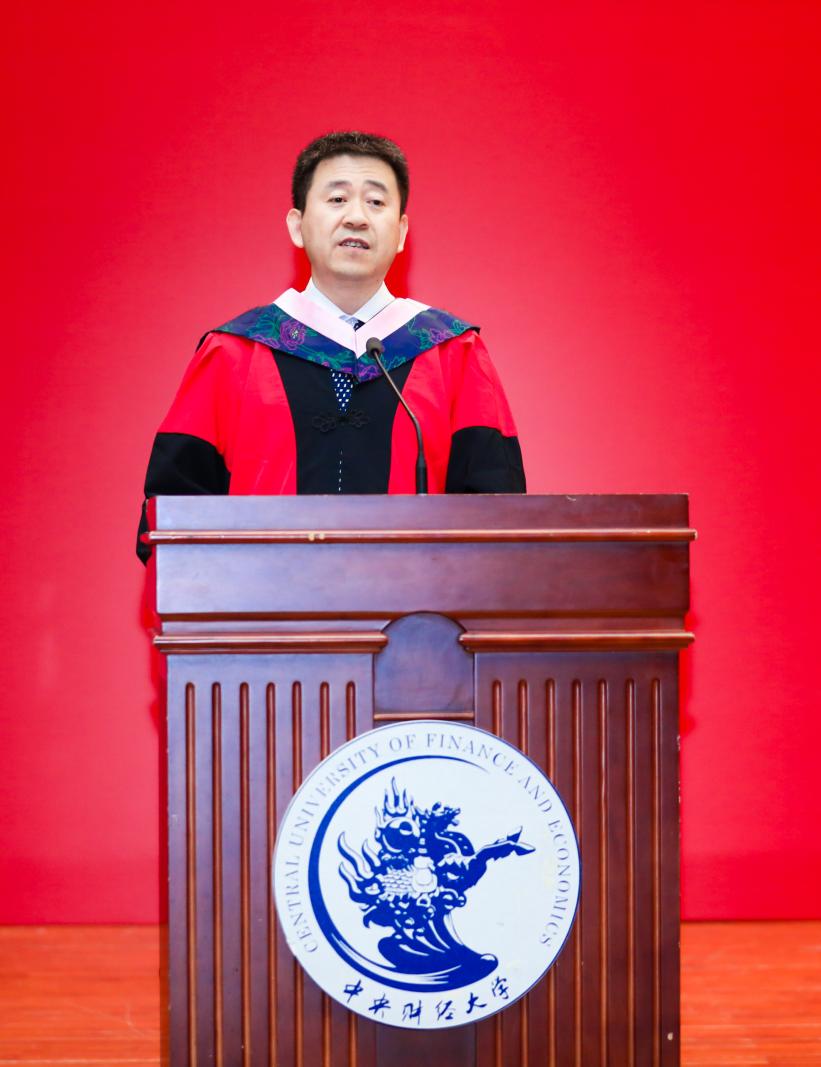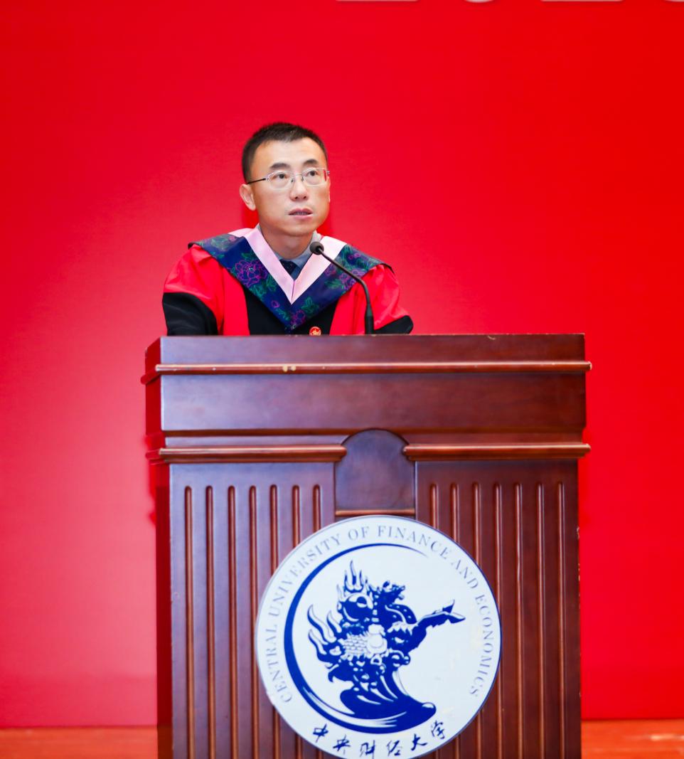 吴溪院长在致辞中向全体毕业生送上由衷的祝福。他基于专业领域的AI与人类分析师优势研究,指出应在“人机协作”模式中积累独特价值;在思维层面,强调换位思考这一思维品质的重要性;阐释了热爱与坚持对人生的意义。他寄语毕业生在无常人生中坚守热爱、将小我融入大我之境,做健康快乐、不断进步的自己。