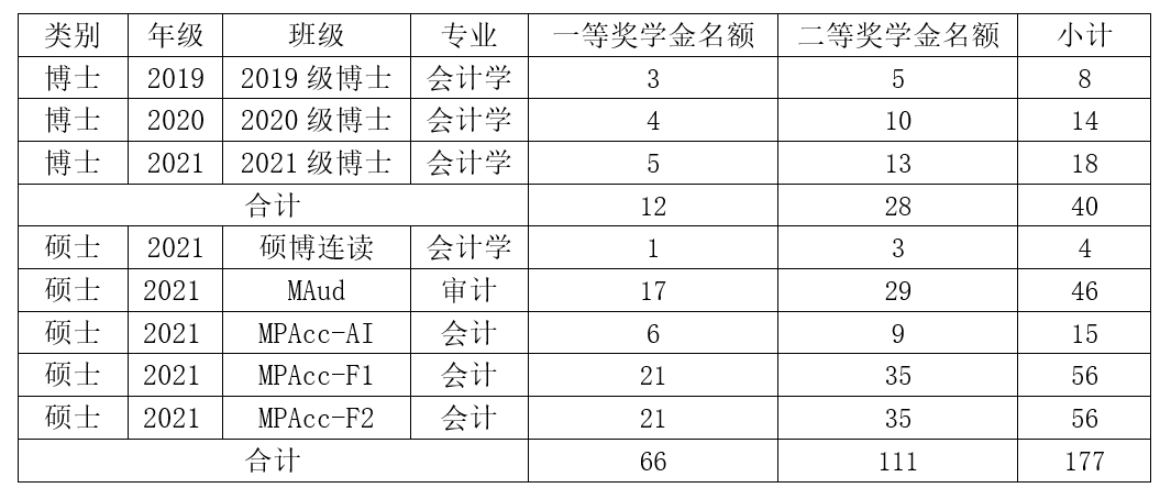 结合学校下发的总体名额,参考学校名额分配方法,学院本年度研究生学业奖学金名额分配如下: