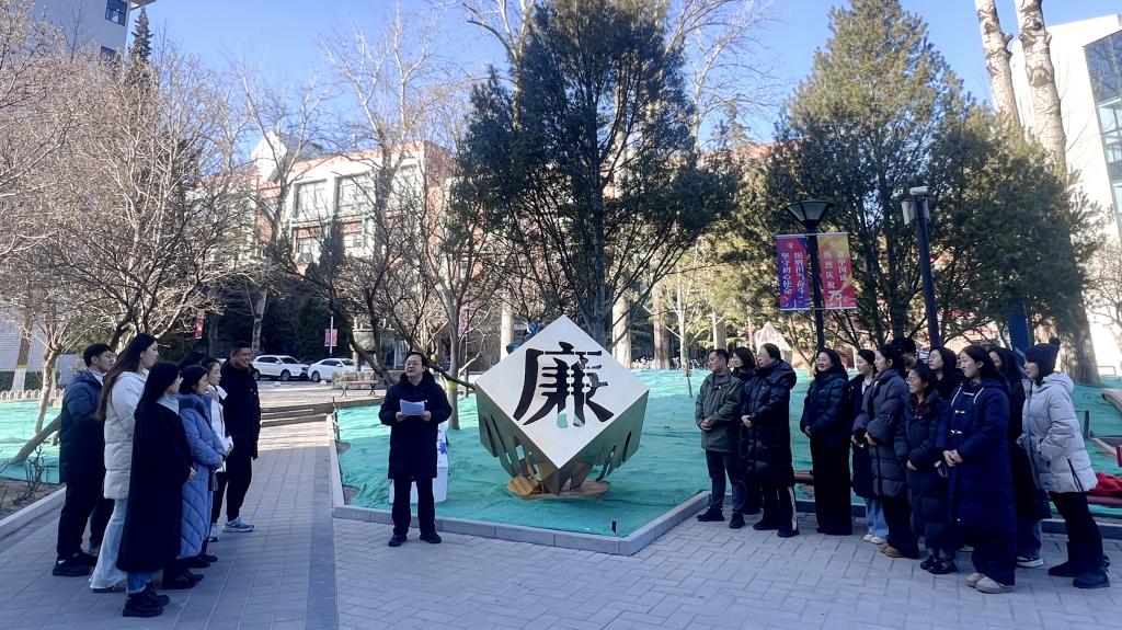 为深入学习贯彻习近平总书记在中国共产党第二十届中央纪律检查委员会第四次全体会议上的重要讲话精神,全面加强党风廉政建设,2025年1月16日,太阳城集团官方网站行政教辅人员教工党支部结合第一议题学习,在学校“廉·正”廉洁文化景观前开展廉政现场教学活动,太阳城集团官方网站全体行政教辅人员参加。