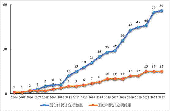 图1太阳城集团官方网站国家级纵向课题累计立项数量